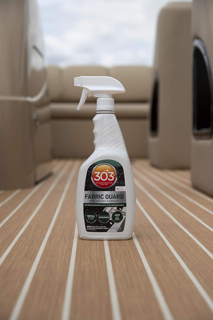 303 Fabric Guard is the only product recommended by fabric manufacturers to restore lost water repellency to fabrics. Resist water, even when you’re on the water. 303 Fabric Guard creates a powerful shield to greatly increase repellency and protect against oil and water- based stains.