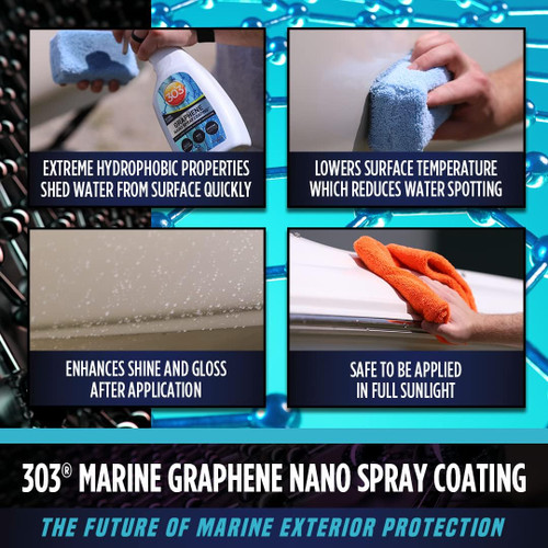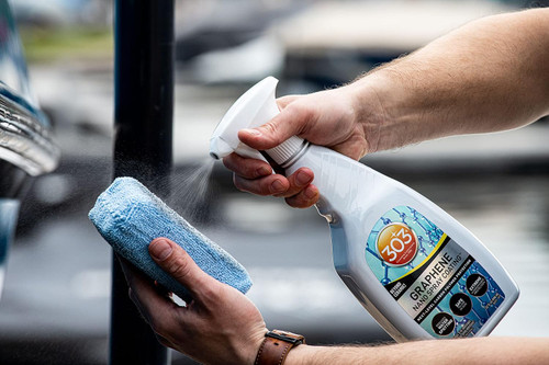 303® Graphene Nano Spray Coating™ is a Graphene Oxide-based coating that provides a high level of protection lasting up to 12 months. This product also lowers surface temperature, which will reduce the number of hard water spots you get on your car’s paint. It also features a high-water contact angle, producing substantial hydrophobic properties that keep the water from sticking to your paint. Following application, the paint will also have enhanced gloss and clarity.