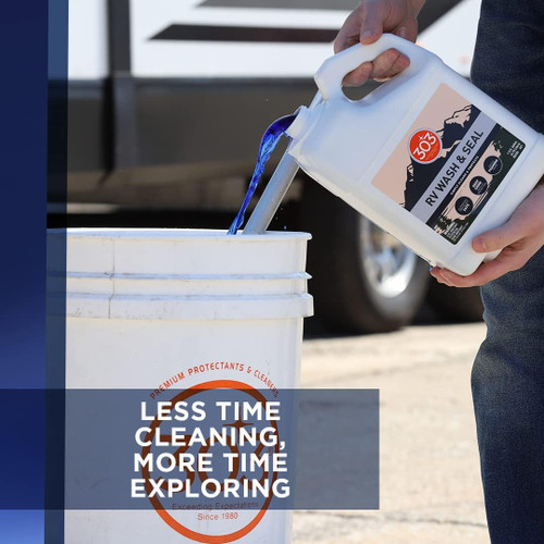303® RV Wash & Seal contains a highly concentrated formula so you can clean your RV the right way the first time. In addition to its cleansing properties, 303® RV Wash & Seal comes equipped with a built-in sealant that works hard to protect the surface of your RV. The adhesive is hydrophilic, meaning it sheets water from an RV’s exterior with ease. The result? The drying process becomes much easier because there will be no water spots, and your RV will be left with a glossy finish.