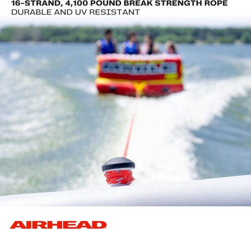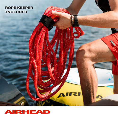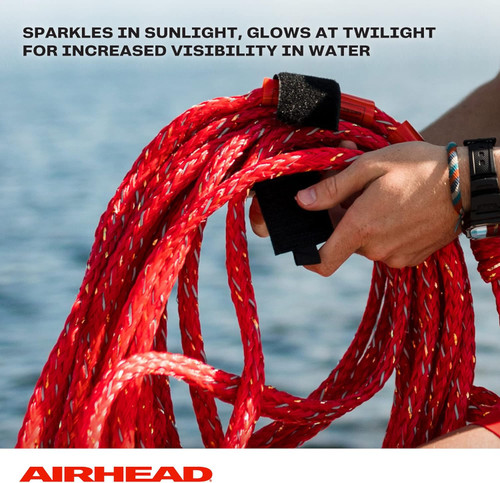 AIRHEAD BLING 4 Rider - 60' Foot Tube Ski Rope-Red/Silver. Add a touch of glamour to your towable tube ride with the Bling 4 Rider Tow Rope. This shimmering rope has innovative reflective material woven with high-quality polypropylene, helping it shine bright in the sunlight. Another reason to love the one-of-a-kind Bling tow rope for tubing is that it’s 60 feet long and has a convenient loop at each end. It also comes with a sparkly rope keeper so you can stay organized in style. Whether you shine on the lake or sparkle at the sea, this rope is guaranteed to make you feel glamorous while you’re speeding in your pull behind the tube.
