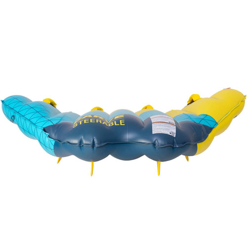 The 5 ventral fins beneath Carve reduce dragging and improve steermanship for a smooth, clean ride. A Kwik-Connect tow point offers fool-proof attachment, so you can hook up to your boat and get riding in no time. Welded seams, a speed safety valve, and a specialty PVC bladder are two more features that elevate Carve to the next level. Carve is a 1 person towable tube designed to build confidence and mastery behind the boat. No matter how experienced, riders will feel safe and confident navigating through wake on this single rider boat towable.