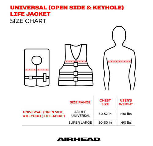 Airhead Element Open-Sided Life Vest | Child-Adult. The Element life vest is designed for comfort and style. The life jacket is approved by both the U.S. Coast Guard and Transport Canada for optimal safety and peace of mind. Featuring a soft-woven 200D polyester shell for comfortable all-day wear at the pool, beach, boating on the lake, or wherever you play on the water. This flotation device includes 3 body belts with easy-release buckets for security while enjoying an unforgettable day on the water.