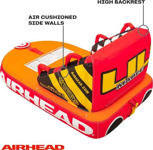 Airhead Lil' Mable 1 Rider Towable Tube for Boating. As a member of our best-selling Mable family, this 1 person towable tube features foam seating pads, cushioned side walls, and a supportive backrest for top-notch comfort and safety. Whether you’re cruising on low-gear or speeding over waves, 4 perfectly-placed double webbing foam handles help keep the rider on board. Plus, our Patented Speed Safety Valve and Kwik-Connect tow point make this chariot easy to attach and detach.