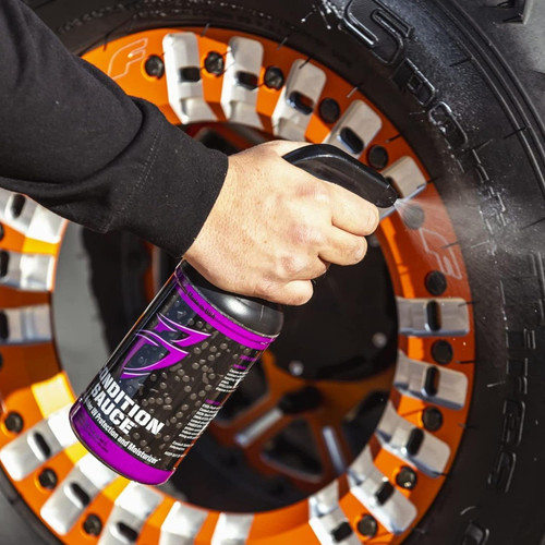 You wouldn’t think of sitting in the sun all day without protective clothing or sunblock. Protect your investment. Unlike generic surface dressings that leave greasy, slippery residue, Condition Sauce is a functional UV protectant designed to block the sun’s harmful rays, prevent fading, cracking and discoloration from vinyl, leather, rubber and plastic while moisturizing the material to provide the stunning ‘like new’ look.