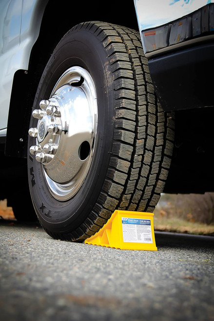 - This standard-sized wheel chock measures 8 1/8" (L) x 4 5/8" (W) x 4 3/16" (D).