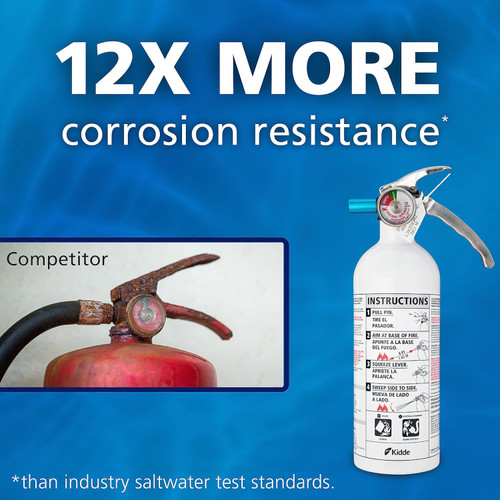 Discover the KIDDE MARINER Fire Extinguishing 5BC 2# is - Class B & C is a marine-grade fire extinguisher with dual-purpose dry chemical suitable for use on Class B (liquids & gases) and Class C (energized electrical equipment) fires. It is fitted with a pressure gauge that provides at-a-glance status, an easy-to-pull stainless steel safety pin and stainless steel valve, handle and lever. The body is made of seamless, powder coated aluminum and features an anodized forged aluminum valve assembly. Comes with an UL approved plastic strap bracket and is U.S.C.G. approved when fitted with supplied plastic mounting bracket. Designed for regular use in marine environments.