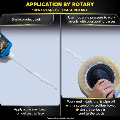 - Formula is specifically designed to both clean the gel coat surfaces and leave behind a high gloss finish in one step