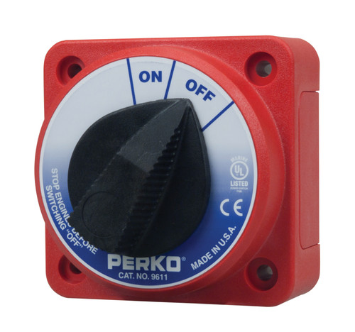 Perko 9611 Series battery On-Off switches use the same traditional Perko footprint as the 9601 Series. This makes for easy installation. These switches can be mounted in numerous locations. And as ignition protected switches, they can be installed in the engine rooms of gasoline powered boats.