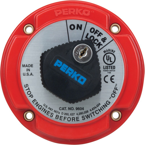 Perko 9601 Series battery On-Off switches are among the most popular battery switches ever produced. Their traditional Perko bolt circle makes for easy installation. These switches can be mounted in numerous locations. And as ignition protected switches, they can be installed in the engine rooms of gasoline powered boats.