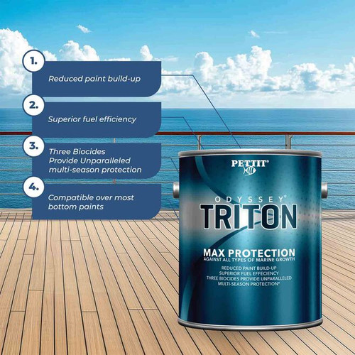 This combination makes Odyssey Triton effective against all types of fouling found in the harshest of marine environments. Odyssey Triton offers a new level of performance while preventing build-up and maintaining smooth underwater surfaces. Odyssey Triton's trouble-free formula is more dependable and compatible without the challenges associated with the competitors’ products.