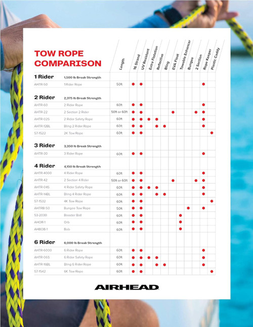 Strong break strength of 2,375 lb. (1,077 kg) ensures safe towing for all Sportsstuff 1 and 2 rider tubes